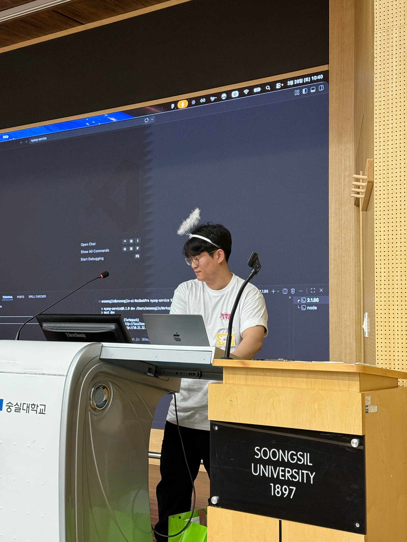 만우절이 해커톤 모토라 일부 인원이 코스프레를 했는데, 나는 발표 준비 때문에 미처 챙기지 못했다. 그런데 발표 직전에 용기를 내라는 의미로 용기의 천사링을 착용하게 되었다.