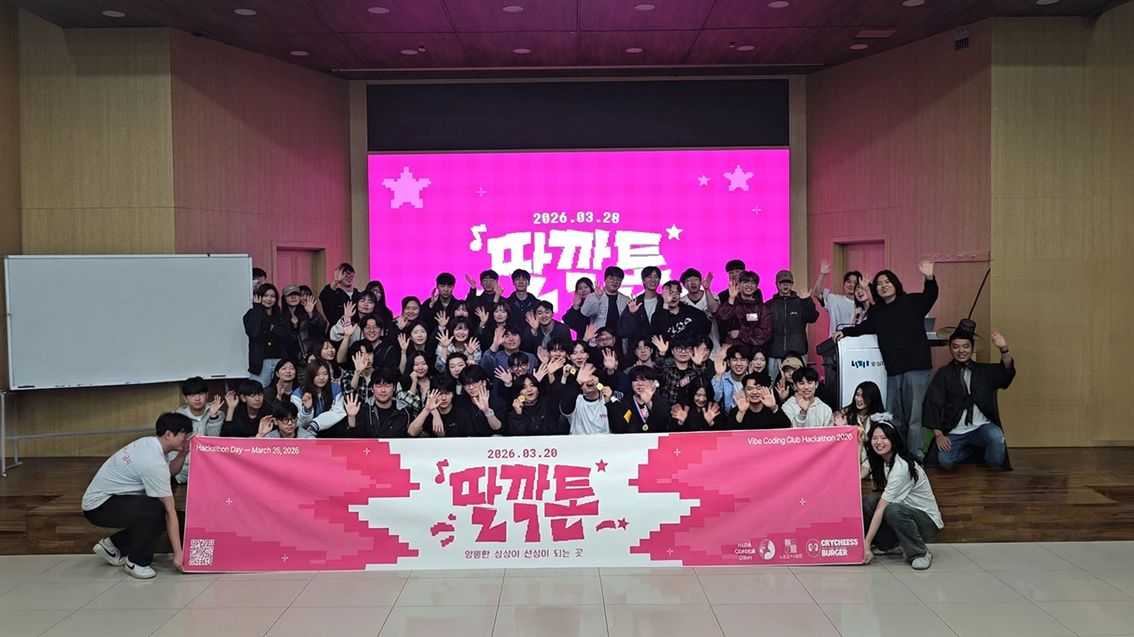 2026년 3월 28일, 숭실대학교 정보과학관에서 AI 바이브 코딩 해커톤 딸깍톤(ttalkkakthon)이 열렸다. 나는 홍보팀 소속으로 참여했지만, 중간에 운영팀 업무까지 병행하게 되었고, 결국 홈페이지 개발부터 AI 심사까지 꽤 넓은 범위를 맡게 되었다. 이 글은 해커톤을 준비하고 당일을 보내면서 느꼈던 것들을 정리한 기록이다.